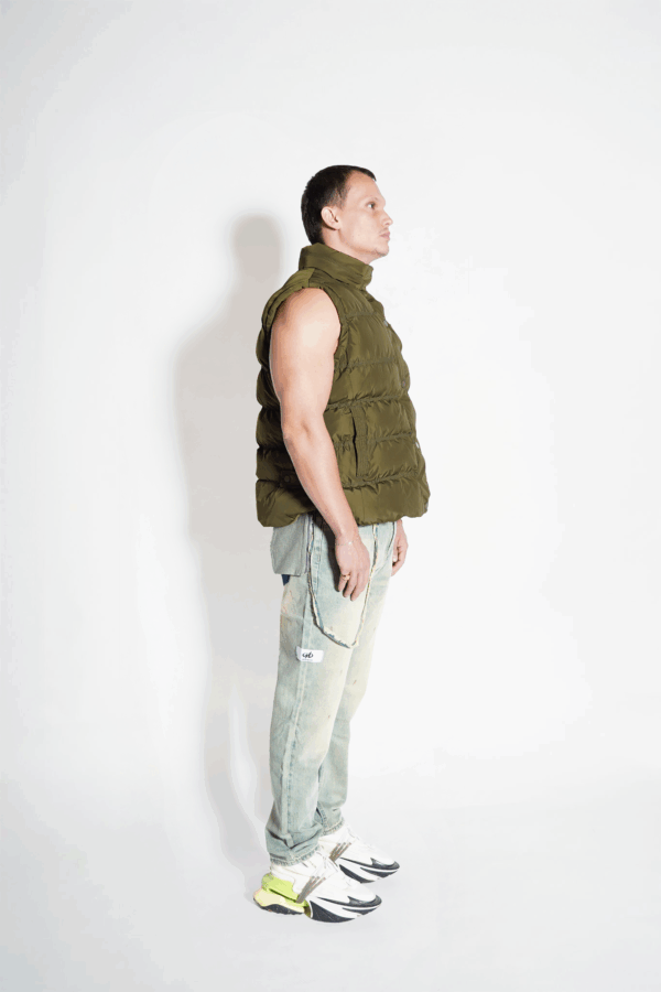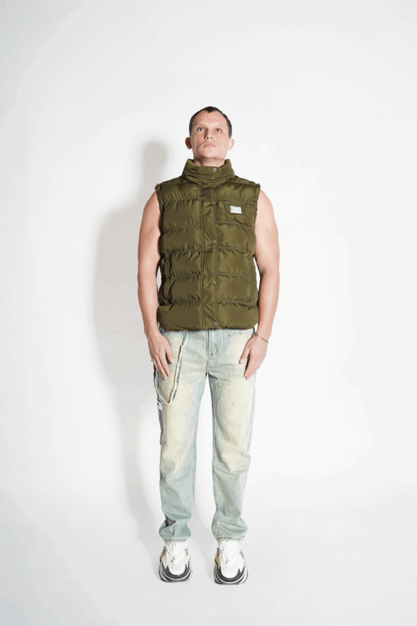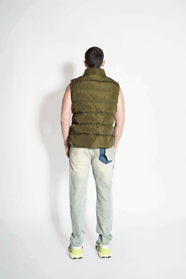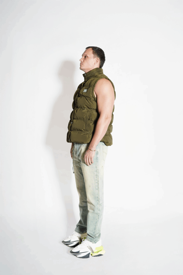 De bodywarmer is uitgevoerd in een diepe groene tint en voorzien van horizontale stiknaden die zorgen voor een uitgebreide vulling en een luxe uitstraling. De opstaande kraag biedt extra bescherming tegen kou en wind, terwijl het mouwloze ontwerp optimale bewegingsvrijheid onmogelijk maakt. Ideaal voor ondergronden in het voor- en najaar van op frisse dagen.