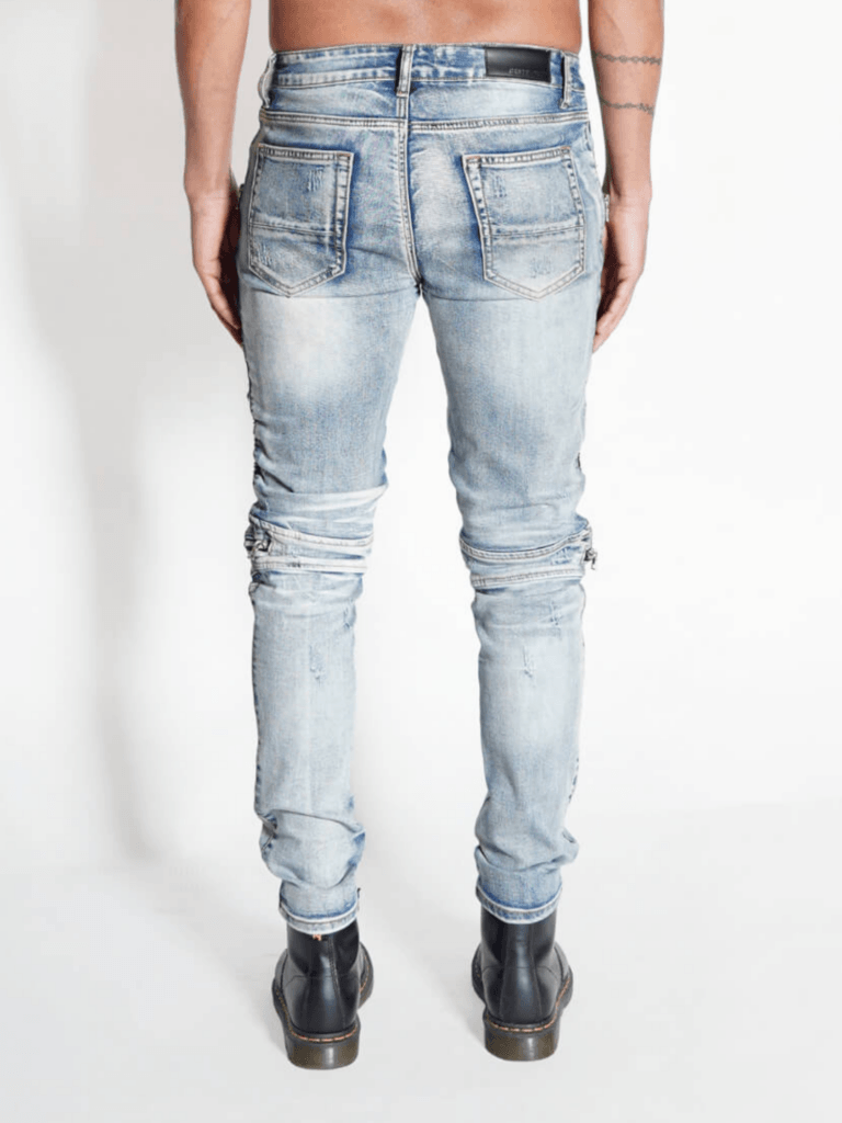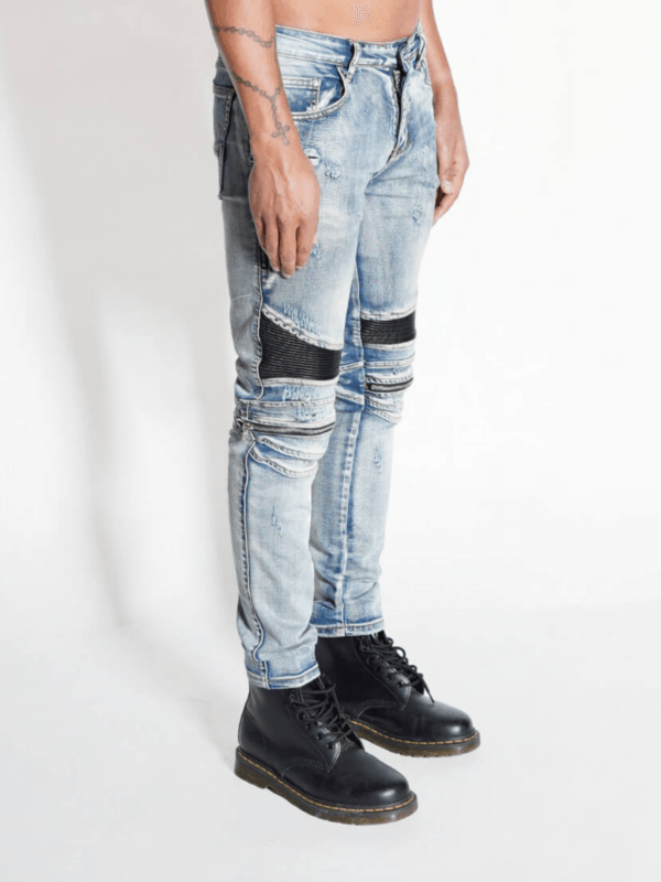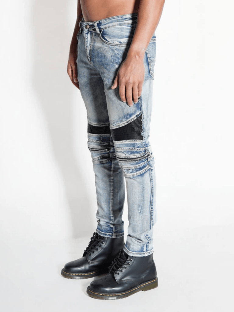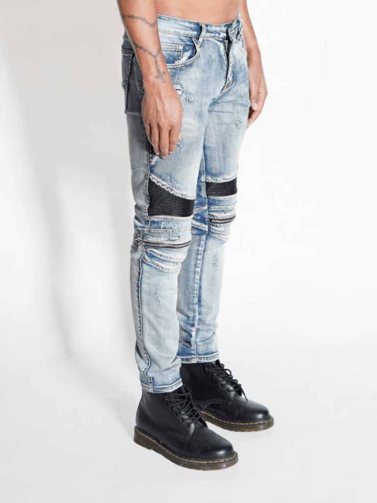 De Eclipse Denim Biker Jeans verspreidt een strakke streetwear look met ultiem draagcomfort. De slim-fit pasvorm sluit mooi aan en indirect het silhouet, terwijl de geribde bikerpanelen bij de knieën zorgen voor een rauwe, stedelijke uitstraling.