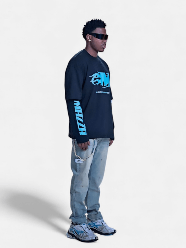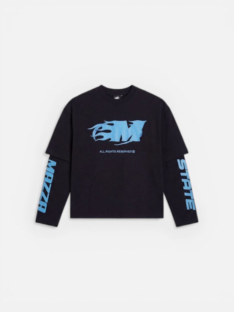 Dit Mazza T-shirt met lange mouwen biedt veel comfort met een krachtige streetwear uitstraling. Het shirt is uitgevoerd in zwart en voorzien van een opvallende Mazza-print op de borst en contrasterende teksten op beide mouwen, wat zorgt voor een moderne en herkenbare look.