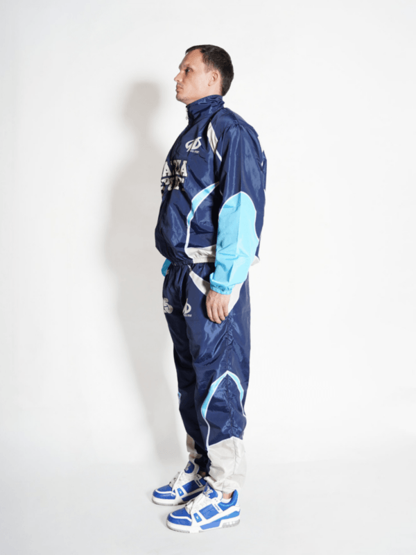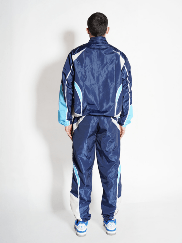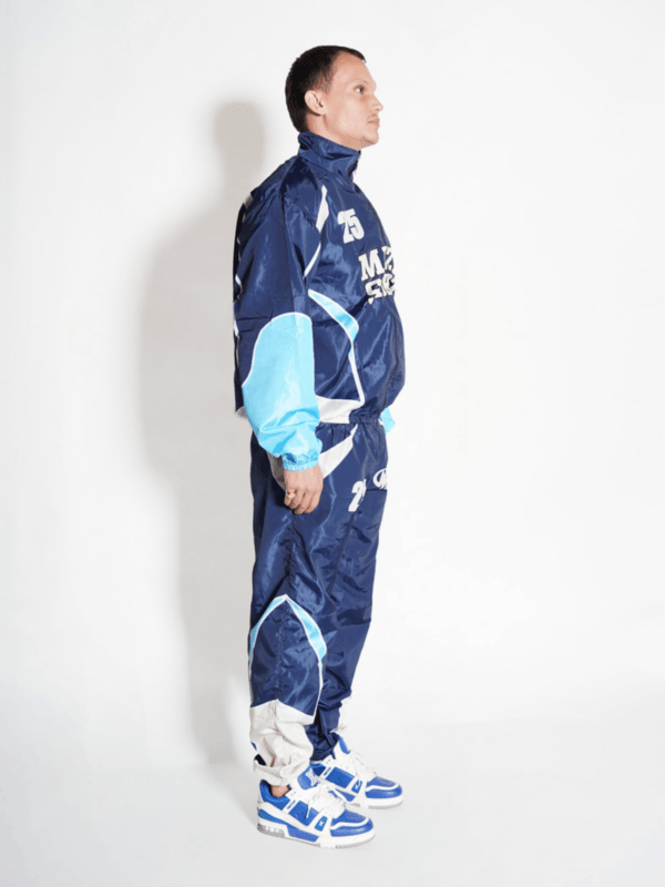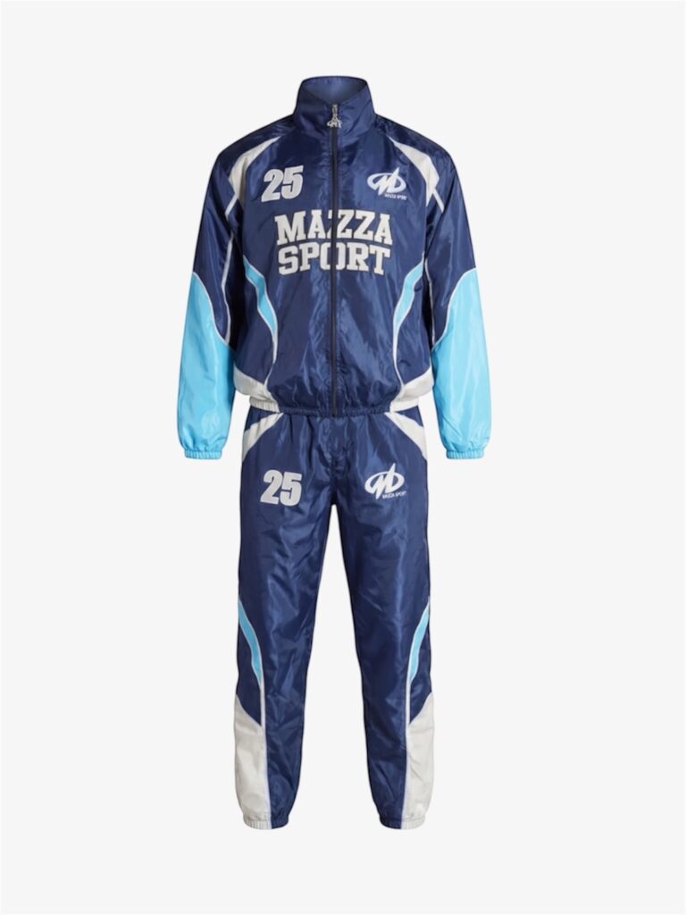 Dit sportieve Mazza Sport trainingspak verspreidt comfort, functionaliteit en een moderne uitstraling. Het pak bestaat uit een jack met synthetische en een standaard trainingsbroek, uitgevoerd in een dynamisch blauw kleurenschema met lichtblauwe en witte accenten. Het trainingspak is robuust van hoogwaardig nylon, een lichtgewicht en duurzame stof die bekend staat om zijn windafstotende en sneldrogende eigenschappen.