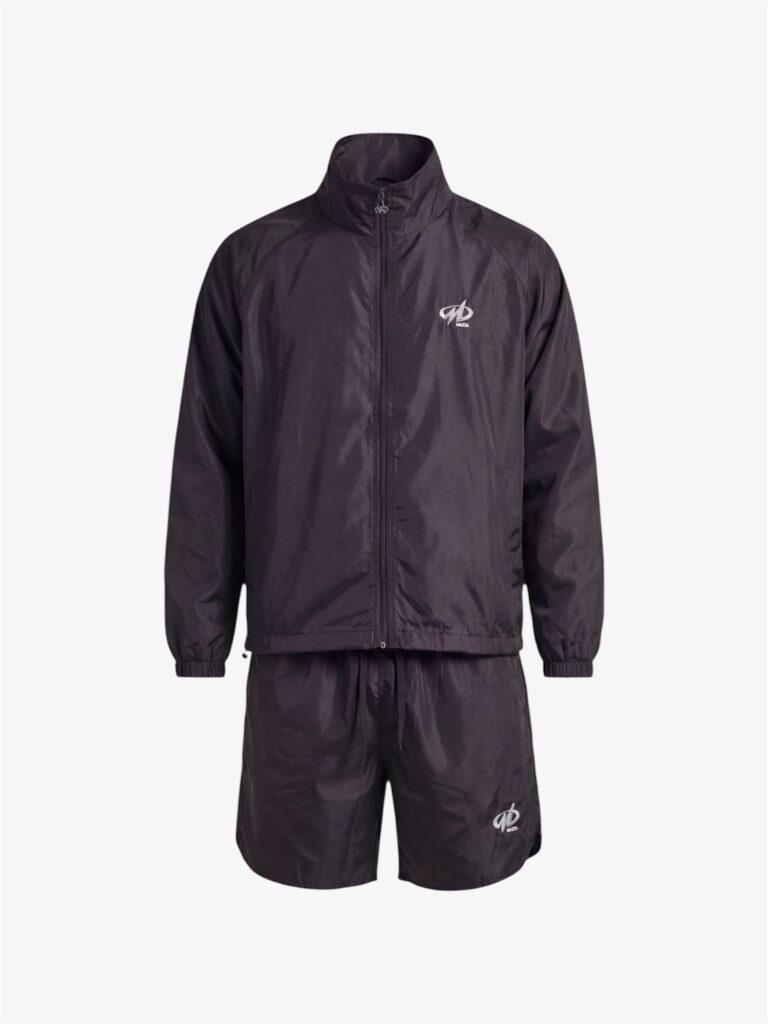 De zip jacket met hoge kraag en de bijpassende shorts zorgen voor een strakke, minimalistische uitstraling, afgewerkt met het subtiele MAZZA logo.
